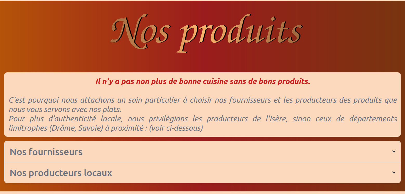 Nous mettons en avant nos producteurs et nos fournisseurs locaux, qui nous permettent d’élaborer tous nos plats savoureux.